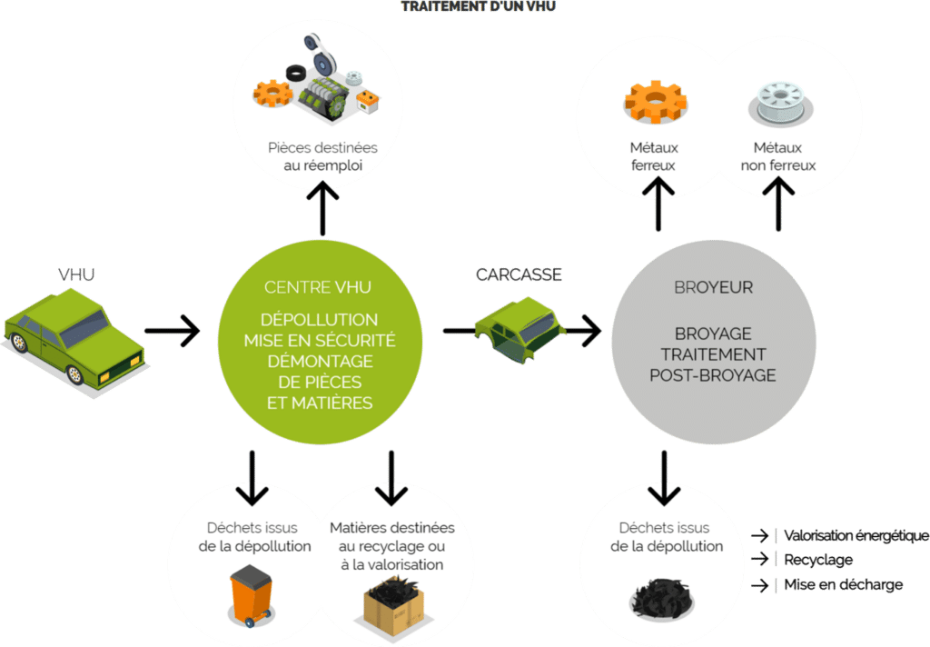 C’est un eco-organisme agrée par l’état qui gère la filière des véhicules hors d’usage toutes marques (VHU)